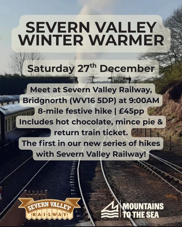 Join us for a festive adventure along the beautiful Severn Way! Our Severn Valley Winter Warmer is the perfect way to enjoy the crisp winter air, scenic riverside views, and a touch of Christmas magic. This special event marks the first in our brand-new series of hikes in collaboration with the Severn Valley Railway, bringing together the joy of walking and the nostalgia of a classic steam railway journey. Expect cosy vibes, twinkling lights, a steaming cup of hot chocolate, and plenty of festive cheer as we end the year on a high note!